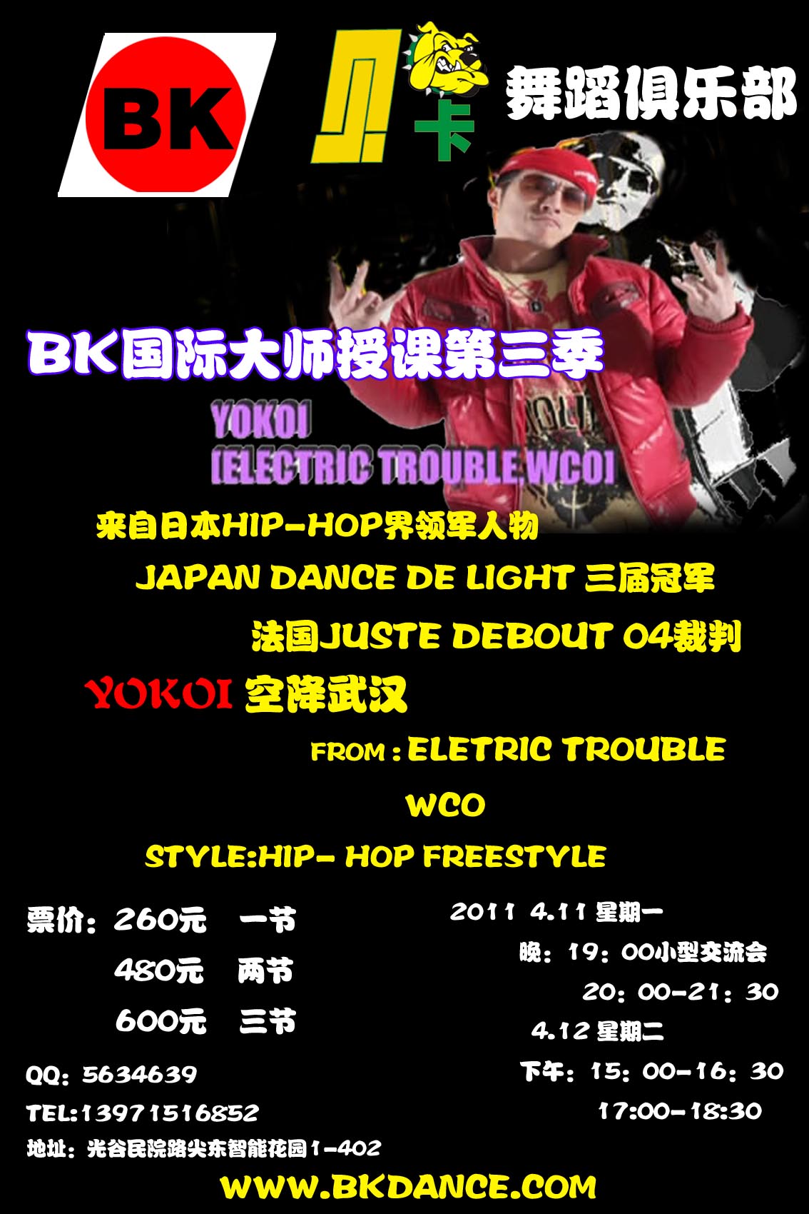 為推動(dòng)湖北HIPHOP DANCE,BK大師授課第三季來(lái)了,繼DEDSON和EMA之后今年第一彈就非常榮幸的邀請到了傳說(shuō)中的來(lái)自日本殿堂級舞者YOKOI,SHUN等等很多世界級舞者的老師他是影響了武漢乃至全國的很多DANCER,相信不用我多介紹他的舞蹈榮譽(yù)大家也許比我知道的還多哈哈