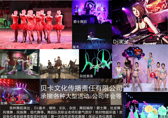 4.貝卡舞蹈,我們?yōu)槟峁┮粭l龍式的服務(wù),會(huì )幫您完成夢(mèng)想。 我們將為您呈現最優(yōu)質(zhì)的晚會(huì )節目,讓您成為晚會(huì )中最耀眼的明星。