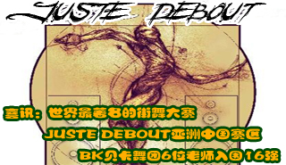 JUSTE DEBOUT是世界最著(zhù)名的街舞大賽在全球共有10幾個(gè)賽區